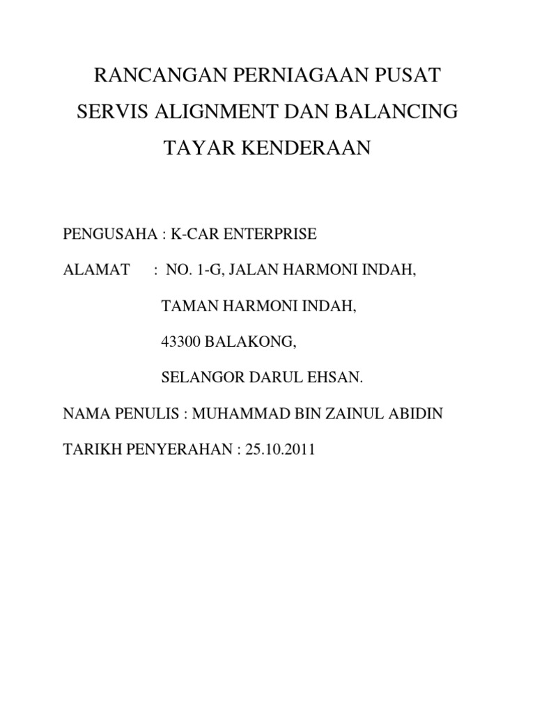 Proposal Bengkel Perniagaan Iprotect Automotif Rujukan